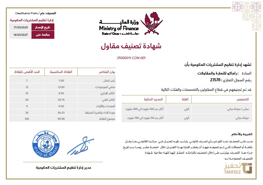 RAMACO Trading & Contracting is proud to announce that it is now certified as an ISO 9001:2015 Quality Management System (QMS) compliant organization.